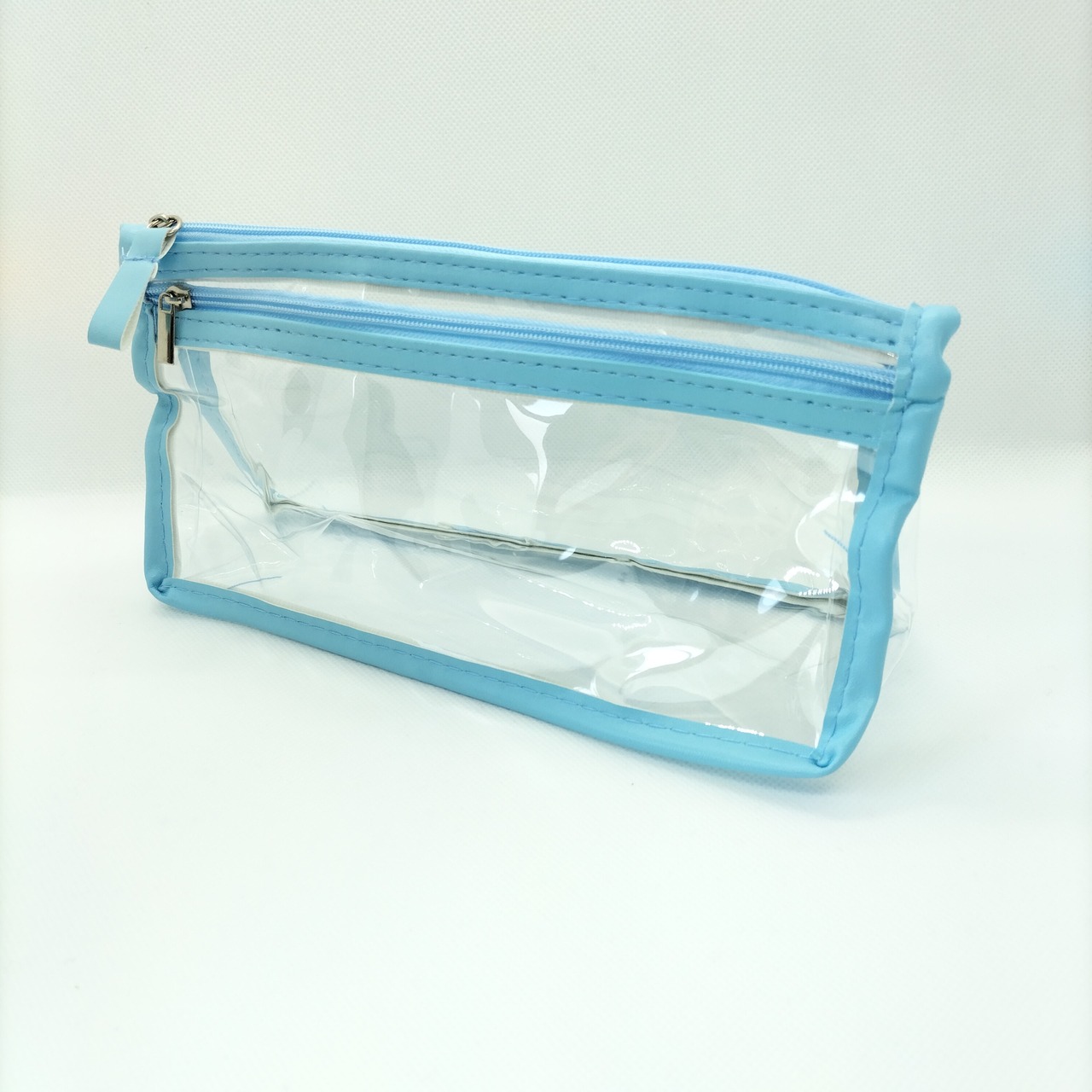【2ポケットタイプ】透明ポーチ クリアポーチ 防水 機能的 推し活 グッズ持ち運び | 約22cmx11cmx7.5cm【ライトブルー】 | 推し活お役立ちショップ 0416world(オシイロワールド)